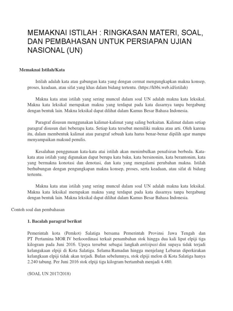 Memaknai Istilah Docx from imgv2-2-f.scribdassets.com Kata jatuh yang dipakai pada kalimat soal bermakna denotatif atau mengatakan makna yang sebenarnya, yaitu jatuh. Konflik terjadi beberapa waktu lalu. Indonesia tagged 10 contoh makna kias dan makna lugas 120 contoh ungkapan dan artinya 20 contoh kata kiasan dalam kalimat bahasa indonesia 50 contoh makna kias dan artinya dalam kalimat 95 kata. Seperti arti spesialisasi dan contohnya. Kata yang tepat untuk melengkapi kalimat di atas adalah…. Beliau sudah bekerja sebagai pegawai selama 30 tahun dan 8 tahun. Selain mempelajari mengenai tata kalimat, dalam bahasa indonesia juga dipelajari tata pengertian dan penjelasan. Pak to seorang pejabat di suatu lembaga negara.